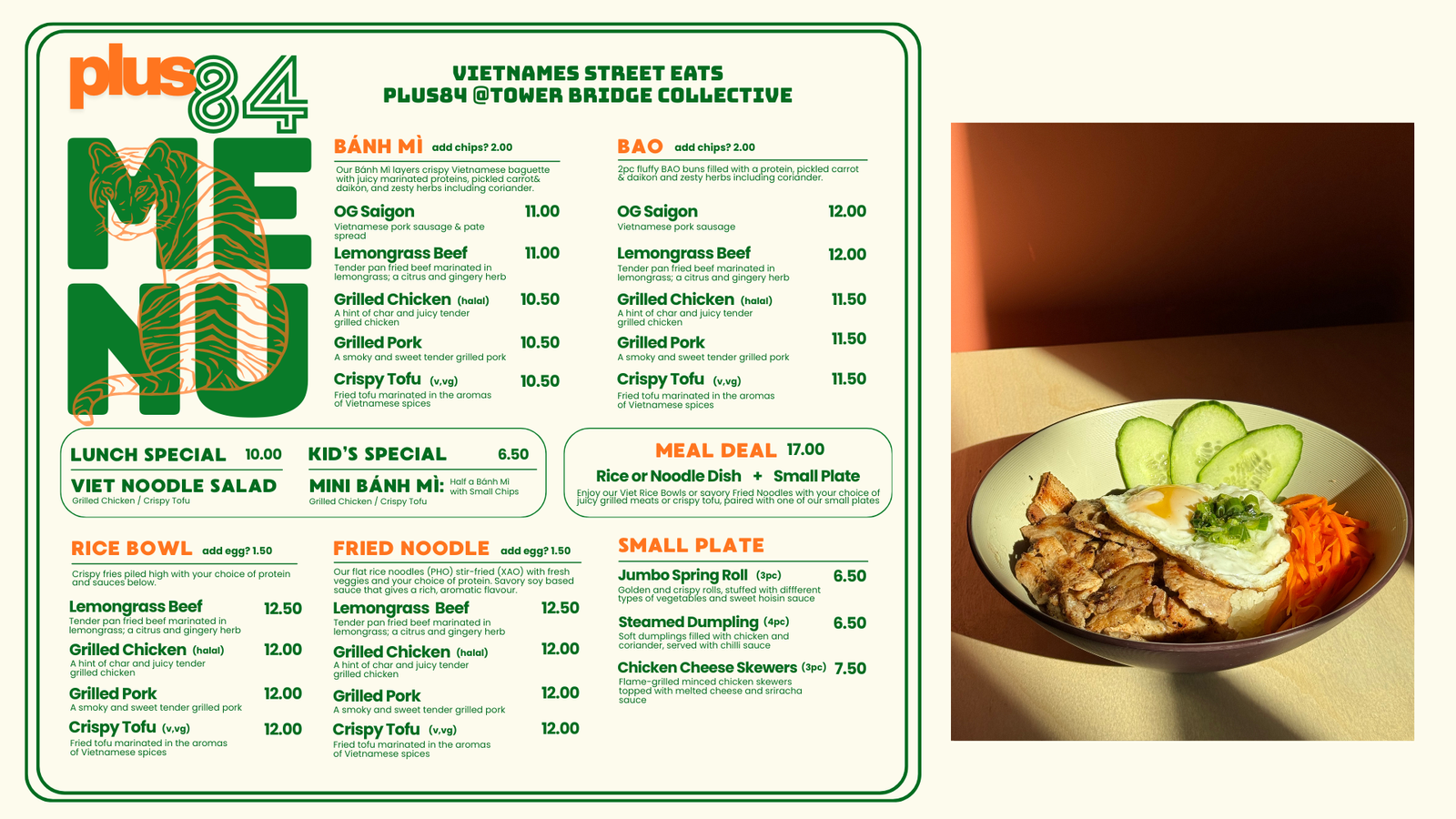 +84 isn’t just Vietnam’s country code, it’s Gray’s way of calling home through food. Born and raised in the buzzing streets of Ho Chi Minh City, Gray grew up surrounded by the sizzling sounds and bold flavours of Vietnamese street food. After moving abroad in 2018, something was always missing, so he built +84 to bring those soulful flavours (and memories) to the UK.